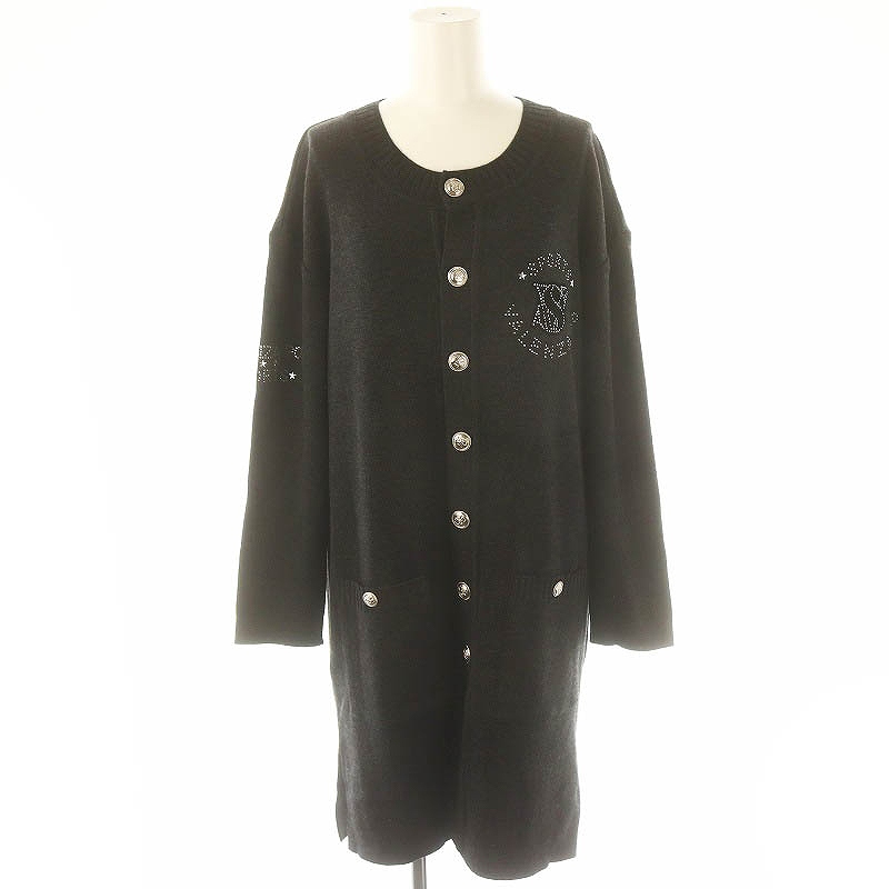 ラインストーンロゴウールロングカーディガン