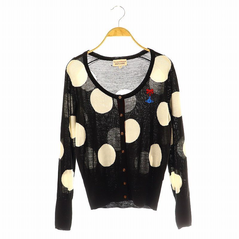 ドット柄 オーブ刺繡 クルーネックカーディガン