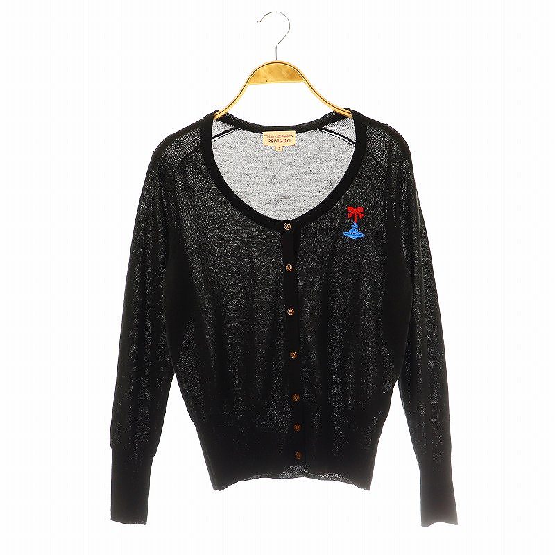 リボン オーブ刺繡 クルーネックカーディガン