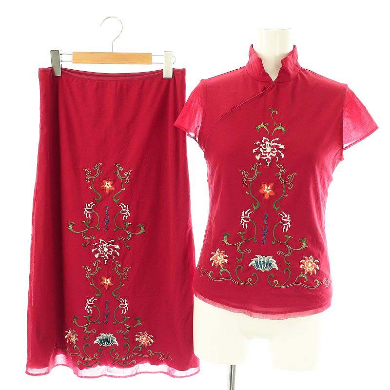 フラワー刺繍 パワーネット チャイナニット スカート セットアップ