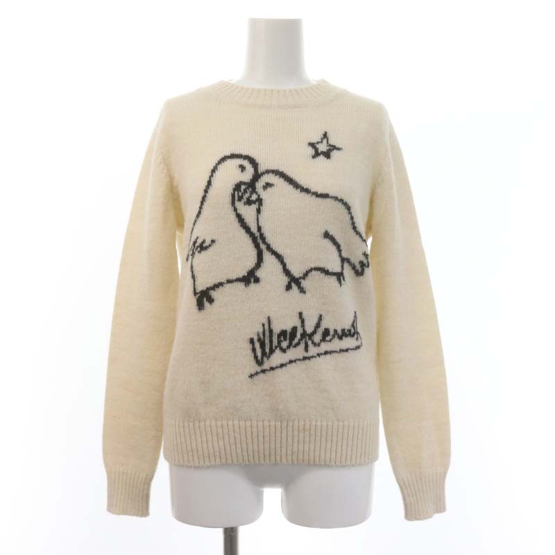 鳥柄 クルーネックニット