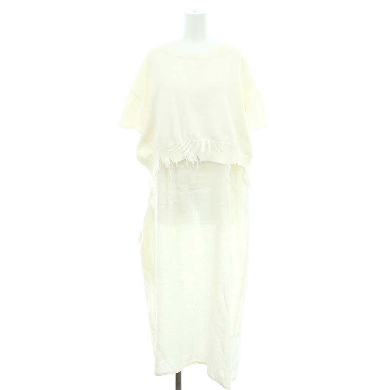 ダメージニット レイヤード リネンワンピース