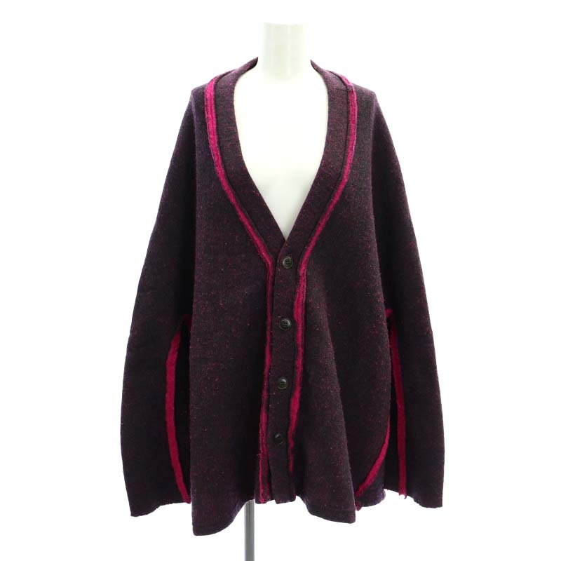 ウールVネック配色カーディガン