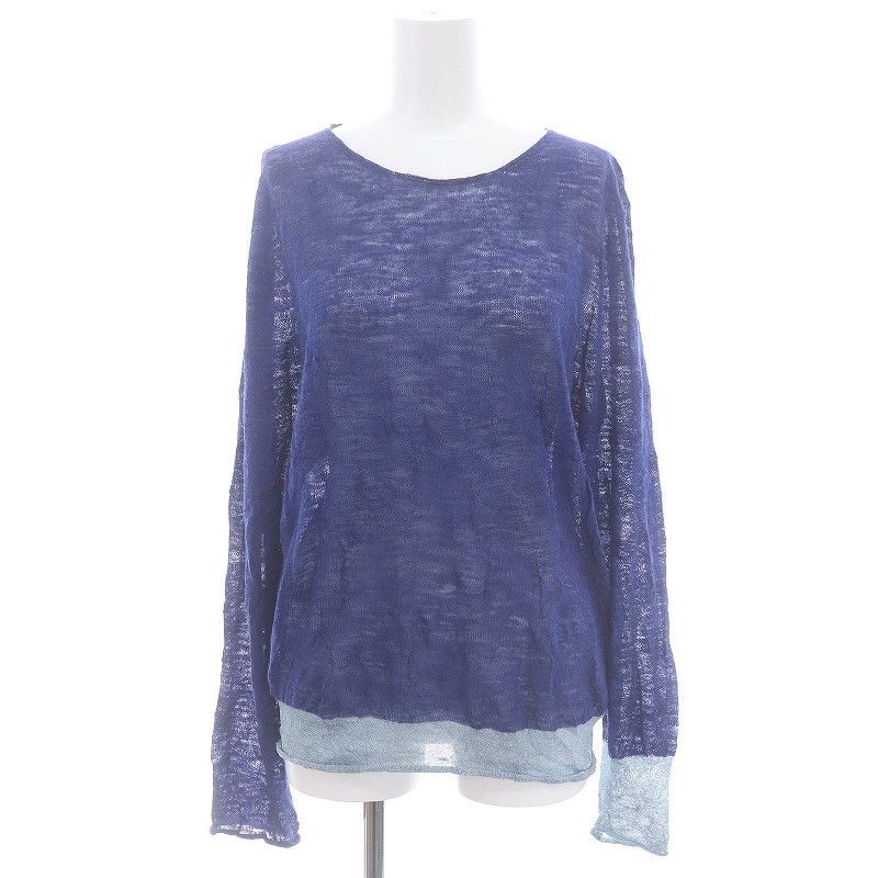 ラメ切替リネンロングスリーブニット