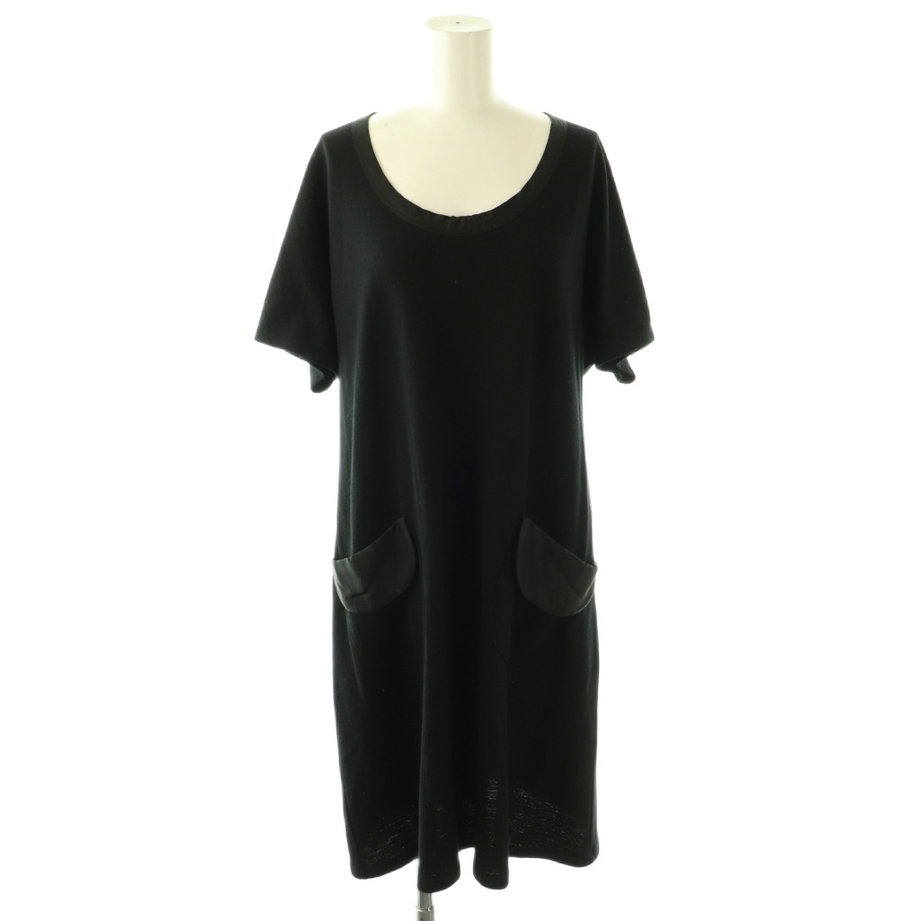 ウール混ワイドリブポケットデザインニット