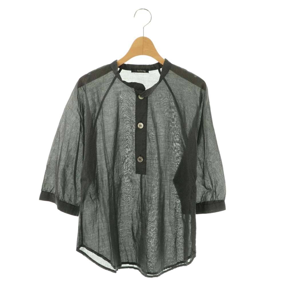 コットンドットバンドカラープルオーバーシャツ