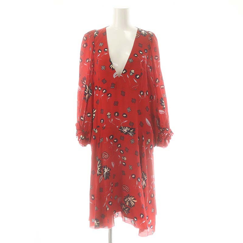 シルク 花柄 Vネック ワンピース