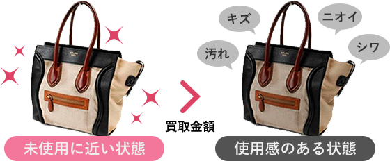 そのため、お買取の際、汚れ・キズ・においなどがあると、買取金額に大きく影響してきます。